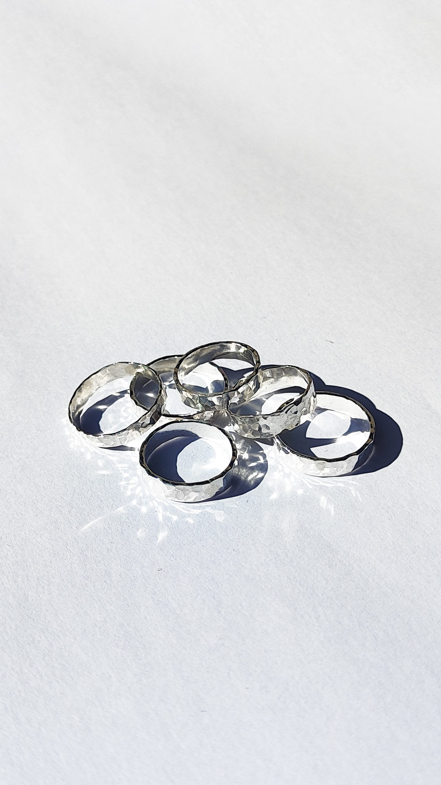 Anillos de plata 950, hechos a mano desde la fundición del metal, su altura es de 5 mm aproximadamente, disponible en todas las tallas.